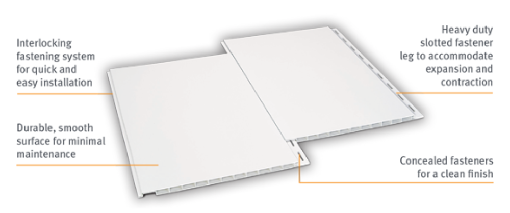 Tongue & Grove - Cielo Raso PVC - Machimbrado panels are an ideal, cost effective solution for all areas of your vehicle wash, including ceilings and walls. They are also specifically designed for walls and ceilings in agricultural buildings with concealed fasteners providing a smooth, clean finish while improving ventilation and airflow.